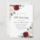 Carton d'Invitation Anniversaire de Mariage 50 ans Floral Aquarelle Rouge Bourgogne Rose