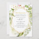 Invitation de fête d'anniversaire de mariage doré de 50 ans tendance avec un cadre géométrique doré et un lavis d'aquarelle vert sauge au verso, conçu pour être personnalisé rapidement et facilement selon les spécificités de votre événement.