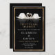 Beaux cygnes peints sur fond noir, blanc et or pour une invitation d'anniversaire de mariage doré élégante et unique.