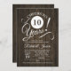 Invitation pour une fête d'anniversaire rustique pour 10 ans avec un motif de bois brun foncé. À la santé de 10 ans ! Parfait pour une célébration élégante.