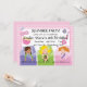 Cette invitation personnalisable de partie de pyjama comporte trois petites filles dans des sacs de couchage pour un sleepover.