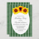 Invitation d'anniversaire de tournesol avec arrière - plan plaid