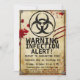 Entrez la zone de quarantaine ! Anniversaire de l'Apocalypse Zombie | Halloween Biorisk Survival Party Invitation mélange les graphiques d'alerte d'épidémie, les symboles toxiques et les humours morts. Idéal pour les enfants, les ados ou les adultes qui veulent un anniversaire Halloween unique. Customisez avec votre nom, âge, date et lieu. Fournitures de partie de risque biologique correspondant disponibles pour un ensemble complet de survie.
