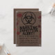 Entrez la zone de quarantaine ! Anniversaire de l'Apocalypse Zombie | Halloween Biorisk Survival Party Invitation mélange les graphiques d'alerte d'épidémie, les symboles toxiques et les humours morts. Idéal pour les enfants, les ados ou les adultes qui veulent un anniversaire Halloween unique. Customisez avec votre nom, âge, date et lieu. Fournitures de partie de risque biologique correspondant disponibles pour un ensemble complet de survie.