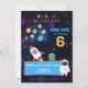 Explosez avec ce design cosmique avec un thème astronaute de l'espace ! Plongez dans un décor de galaxie noire parsemé de fusées, d'aliens et de planètes. Customisez-le avec vos détails d'événement pour le rendre unique à vous ! Disponible sous forme d'invitations imprimables et de téléchargements instantanés.