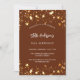 Arrière - plan marron décoré d'étoiles dorées. Personnalisez et ajoutez un nom et des détails du parti. Le nom est écrit avec un script de style écrit à la main, des lettres de couleur blanche.