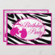Des mitaines roses et des rayures de zèbre invitent à la fête d'anniversaire pour les fêtes d'hiver. Idéal pour avoir une fête d'anniversaire de patinage sur glace ou de motoneige.