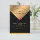 Arrière - plan noir avec un triangle or en haut et parties scintillant or en bas. Une perle rouge au milieu