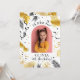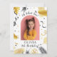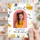 Célébrez l'anniversaire d'une fille spéciale dans le style doré avec ce design de fête joyeuse et moderne! Doté d'un enfant joyeux dans un cadre en arc doux, entouré de feuilles dorés, de confettis noirs et de serpentins ludiques, ce modèle modifiable apporte plaisir et festivité à votre célébration.