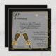 Elégante invitation de fête du cinquantième mariage en noir avec une tonalité dorée bordée d'une zone de texte semi-transparente, au milieu. Des graphismes de deux stars du verre de champagne et de l'or finissent cette magnifique invitation. Le texte en noir est entièrement personnalisable pour répondre à vos besoins. Jolie invitation que vous serez fier d'envoyer.