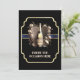 Un design élégant, élégant et élégant, une bouteille vintage de vin pétillant sertie contre un arc bleu bordée d'un faux or encadré par un cadre de pétoncle doré. Le dos a la même bouteille élégante de bulles et de modèles pour votre libellé personnalisé. Elles sont idéales pour toute célébration spéciale, qu'il s'agisse d'un événement d'affaires, d'un diplôme, d'une retraite, d'une réunion, d'un faire-part de naissance, d'une fête du Nouvel An ou d'un autre événement marquant.