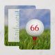 Fermer une boule de golf blanche sur le tee rouge dans l'herbe pour toute invitation de fête d'anniversaire d'âge.