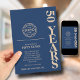 Célébrez votre anniversaire d'affaires avec ces invitations de fête bleu marine avec vos détails en lettres or clair chic. Personnalisez-vous en téléchargeant votre logo d'entreprise (en tant que fichier PNG avec un arrière - plan transparent.)