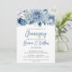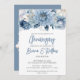 Mariage floral bleu Dusty Invitation fête Anniversaire en utilisant une police moderne.