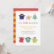 Célébrez l'anniversaire de votre petit enfant avec cette mignonne invitation audacieuse à l'anniversaire. Avec 6 monstres colorés placés en haut et en bas. "Notre petit monstre" apparaît dans une typographie douce aux couleurs vertes et rouges. Revenir aux bandes rouges et jaunes pour compléter l'avant.