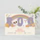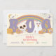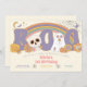 Invitation d'anniversaire d'Halloween rétro super avec arc-en-ciel, fantômes éffrayants, citrouilles et beaucoup de fleurs. Parfait pour une soirée hippie des années 70 !