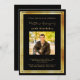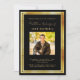Une invitation d'anniversaire élégante, moderne et simple. Un arrière - plan noir décoré de faux cadres dorés. Personnalisez et ajoutez un nom photo et des détails. Texte doré.