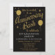 Cette invitation amusante et festive pour l'anniversaire de mariage présente un fond noir avec des ballons et des étoiles à paillettes dorées. Elle a une élégance et une touche fantaisiste avec un bord stylé. Le couple d'anniversaire adorera cette invitation stylée, tout comme vos invités. Pour 5, 10, 15, 20, 25, 30, 35, 40, 45, 50 ans ou toute autre année entre !