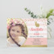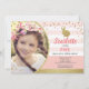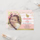 Invitation photo de fête thème lapin rose et or élégant pour l'anniversaire d'une petite fille.