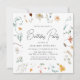 Invitations simples et fleuries pour fêter votre anniversaire avec les détails de votre fête nichés dans un cadre carré fleuri de fleurs sauvages d'aquarelle et feuillage dans les tons blanc, jaune, rouge, crème, bleu et vert. Les invitations d'anniversaire du fleur sauvage de boho sont parfaites pour les adultes et les enfants.
