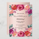 Une carte d'invitation élégante pour une fête d'anniversaire de 50e (ou tout âge). Avec des fleurs contemporaines couleur rose vif, violet et or rose, colorées d'eau, les fleurs comme décoration. Un arrière - plan chic rose en dégradé d'or. Le nom est écrit avec un script de style écrit main noire.