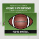 Modèle de carte d'invitation pour une fête d'anniversaire avec un ballon de football / rugby de dessin animé cool.