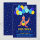 Une invitation d'anniversaire de garçon de dinosaure de dessin animé volant avec des ballons et entouré de confettis pour une fête rugissante. Vous pouvez personnaliser pleinement le texte de l'invitation d'anniversaire. Si vous avez besoin d'aide pour adapter vos informations, veuillez me contacter à requests@prettygreetings.co.uk.