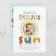 Cette invitation de 1er anniversaire pour garçons mignonne et fantaisiste comporte un soleil, avec le texte « premier tour autour du soleil », et peut être personnalisée avec toutes les informations dont vous avez besoin pour la première fête de votre enfant de manière mignonne, et deux photos. L'invitation comporte également un soleil assorti, une photo et un ciel bleu au verso. Les invitations lumineuses parfaites pour le premier anniversaire de votre petit !