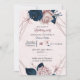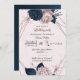 Elégante marine bleu et rose fleurs et quelques beaux feuilles sur un cadre géométrique invitation fête d'anniversaire Les détails de la parties scintillant sont simulés