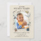 Célébrez le premier anniversaire de votre petit magicien avec cette invitation photo sur le thème de Harry Potter, dans un style vintage magique. Avec des designs charmants inspirés du monde des sorciers et un espace pour mettre en valeur une photo personnelle, cette invitation donne le ton pour une célébration inoubliable remplie de fantaisie et d'émerveillement.