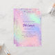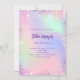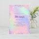 Une invitation à la fête d'anniversaire de 18e anniversaire, féminine et féminine (ou tout âge). Devant : Un arrière - plan de couleur holographique en violet, rose, vert menthe. Décoré de parties scintillant en faux rose et violet. Personnalisez et ajoutez un nom et des détails du parti. Le nom est écrit avec un script de style écrit à la main, des lettres de couleur violette.