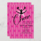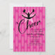 Deux, quatre, six, huit. Come célèbrent avec cette invitation à la mode d'anniversaire de pom-pom girl. Il a une silhouette noire de cheerleading sur une étoile scintillée rose qui, est placée sur un arrière - plan iridescent lumineux. Personnalisez avec votre information de partie.