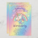 Invitation Anniversaire Licorne Arc-en-Ciel Paillettes Dorées