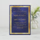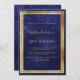 Une carte d'invitation branchée et moderne de 50e anniversaire (ou de n'importe quel âge) pour hommes, hommes, hommes. Un arrière - plan bleu marine. La couleur bleue est inégale. Avec un cadre en faux or et des confettis dorés saupoudrés, des lettres de couleur dorée. Personnalisez et ajoutez votre nom et les détails de votre fête. Dos : arrière - plan bleu avec saupoudrer de confetti.