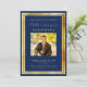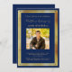 Une invitation d'anniversaire élégante, moderne et simple. Un arrière - plan bleu marine décoré de faux cadres dorés. Personnalisez et ajoutez un nom photo et des détails. Texte doré.