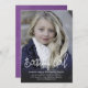 Elégante et moderne calligraphie script photo invitation anniversaire de naissance. Ajoutez la photo de votre fille et les détails de la fête à ce modèle d'invitation d'anniversaire facile à personnaliser. Le revers de cette invitation à tout âge anniversaire est un magnifique lavage d'aquarelle violet.