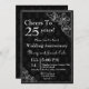 Elégant noir et argent scroll bordure Anniversaire invitation de la fête que vous pouvez customiser.