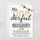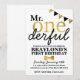 Cette invitation anniversaire noir et or M. Onederful ajoute un thème spécial à l'anniversaire de votre enfant.