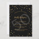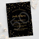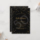 Une invitation glamour à la fête d'anniversaire pour lui et elle. Un arrière - plan noir décoré de faux étoiles dorées. Personnalisez et ajoutez un nom et des détails du parti. Texte de couleur dorée. Numéro d'âge comme filigrane. Retour : noir arrière - plan et étoiles d'or.