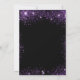 Une invitation à la fête d'anniversaire de 21e anniversaire, féminine et féminine (ou tout âge). Devant : Un arrière - plan noir chic. Décoré avec de la poussière de parties scintillant en faux violet foncé. Personnalisez et ajoutez un nom, les détails de la fête et 6 photos. Le nom est écrit avec un script de style écrit à la main, des lettres de couleur violet clair. Retour : arrière - plan noir et fausse parties scintillant.