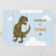 Les enfants adoreront venir à un anniversaire quand ils recevront cette invitation ! Un dinosaure T-Rex passe un bon moment sur une balançoire. Customisez le devant avec le nom et l’âge du garçon d’anniversaire, et l’intérieur est entièrement personnalisable avec les détails de la fête.