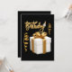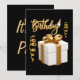 Cette invitation met en valeur le mot "Anniversaire" dans un style d'écriture cursive manuscrite avec des lettres de couleur dorée et un contour blanc, avec un chapeau d'anniversaire, des serpentins et un cadeau dans ce thème et style d'anniversaire. Imprimé sur un papier classique de 17,5 pt d'épaisseur avec une finition mate non couchée et une texture coquille d'œuf, fabriqué et imprimé aux États-Unis avec "C'est une fête" imprimé au verso.