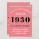 Invitation Anniversaire personnalisé 1930 Ajouter un nom Pink