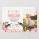 Invitation d'anniversaire sur le thème des animaux de ferme floraux roses mignons avec plusieurs animaux de ferme et bannière rose.