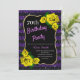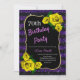Elégante parties scintillant à rayures violettes et noires et roses jaunes invitation à la fête d'anniversaire pour les femmes de n'importe quel âge. L'âge peut être modifié pour n'importe quel âge. Le texte peut être changé en n'importe quoi pour s'adapter à votre événement. Les polices, la couleur de police et le texte sont entièrement personnalisables ! La forme et le type de papier peuvent être customisés pour correspondre à votre budget et à votre goût!