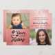parties scintillant d'or rose et invitation photo fausse métallique pour une fête d'anniversaire élégante pour n'importe quel âge anniversaire avec un design typographique rétro indiquant # YEARS IN THE MAKING qui intègre son année de naissance dans le design et 2 photos (peut-être inclure des photos THEN et MAINTENANT pour une invitation mémorable). Les détails de l'invitation de la fête se trouvent à l'arrière. ASSISTANCE : Pour obtenir de l'aide sur la modification ou la personnalisation de la conception, le changement de couleur, le transfert de la conception vers un autre produit ou pour coordonner des éléments, contactez le concepteur AVANT DE COMMANDER via l'onglet MESSAGE Conversation Zazzle ci-dessous ou envoyez un courriel à makeitaboutyoustore@gmail.com.