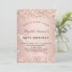Pour une soirée d'anniversaire élégante de 50ème (ou tout âge). Un arrière - plan rose en or. Décoré d'une parties scintillant en faux or rose et d'un grand papillon. Personnalisez et ajoutez un nom et des détails du parti. Le nom est écrit avec un script de style manuscrit