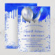 Invitation Anniversaire royal bleu argent ballons scintillant