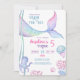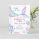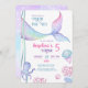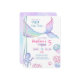 Une invitation à l'anniversaire sur le thème nautique avec des illustrations du fond marin, une pieuvre mignonne, une adorable méduse et une queue de sirène magique.