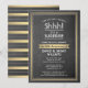 Peux-tu garder un secret ? Famille d'Invitations et amis à une fête d'anniversaire de surprise élégante et passionnante avec des invitations personnalisées noir, blanc et fausse feuille d'or. Tout le libellé de ce modèle est facile à personnaliser, y compris le message qui dit "Shhh! C'est une SURPRISE." Le design comprend une bordure rayée moderne sur un arrière - plan de tableau de bord imitation, une typographie vintage classique de l'art déco et une calligraphie de script élégante. Veuillez noter que l'or est imprimé en couleur foncée, pas en feuille métallique. Félicitations et bon anniversaire !